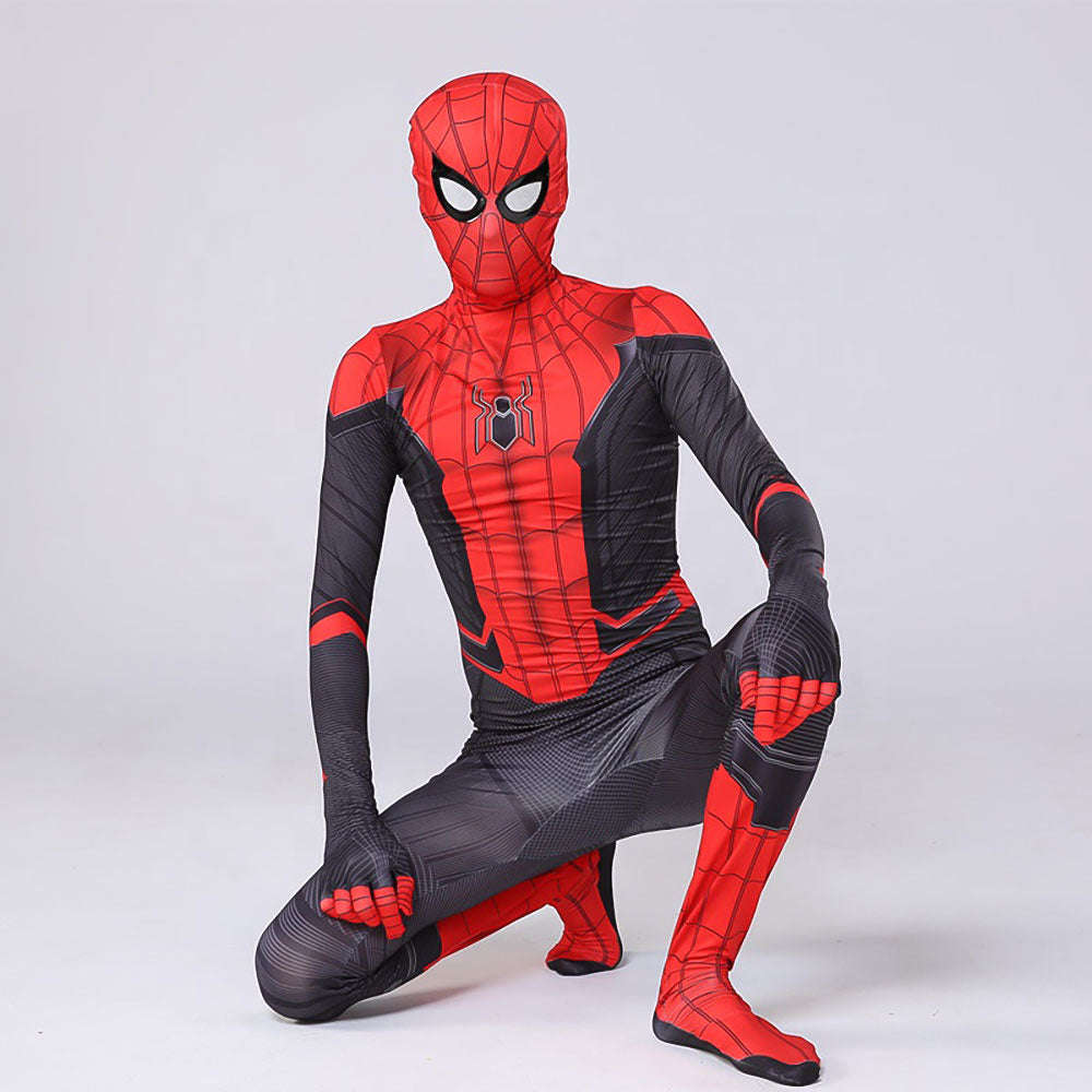 Déguisement super-héros rouge et noir pour homme avec combinaison intégrale et masque assorti. Tissu extensible et respirant, impression 3D ultra réaliste pour un rendu fidèle aux films. Idéal pour Halloween, cosplay ou soirées à thème. Produit sous licence officielle Marvel pour incarner le célèbre justicier de New York.