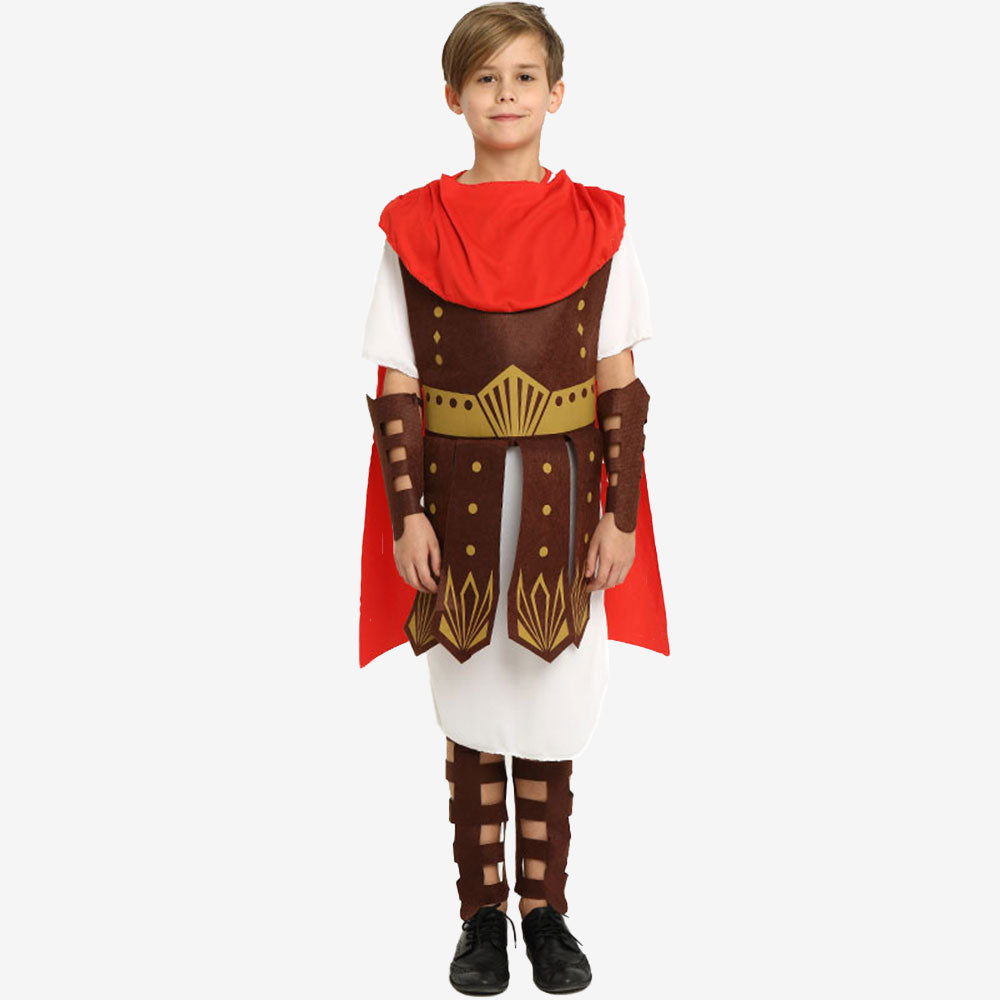 Déguisement de gladiateur romain pour enfant, complet avec cape, plastron et accessoires. Costume réaliste et confortable, parfait pour Halloween, carnaval ou fête à thème.