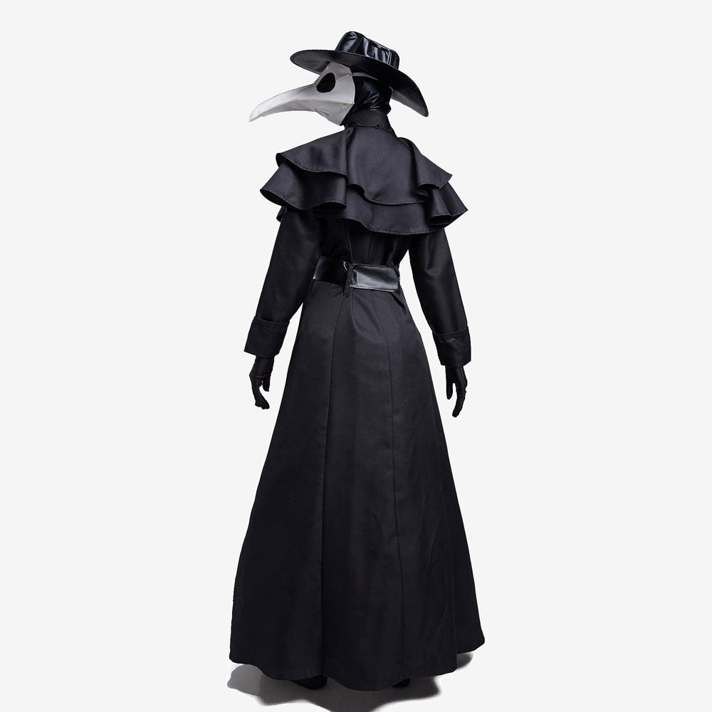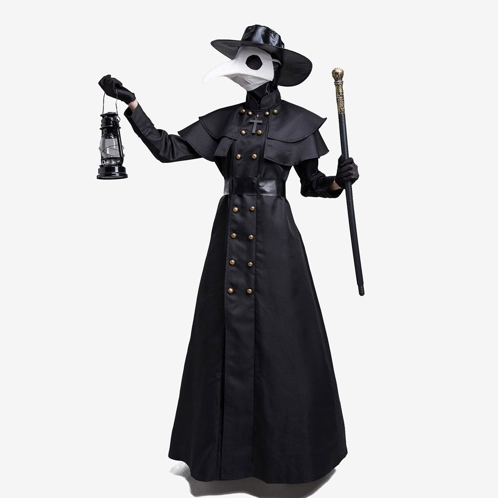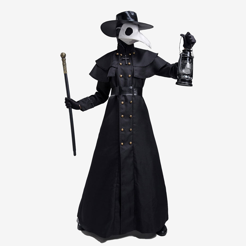 Costume adulte à thème historique. Comprend le long manteau noir, le masque emblématique, le chapeau, les gants et le couvre-cou assorti. Tissu fluide et confortable, parfait pour Halloween, Carnaval ou une soirée déguisée. Facile à enfiler, unisexe et disponible en plusieurs tailles pour un rendu spectaculaire.
