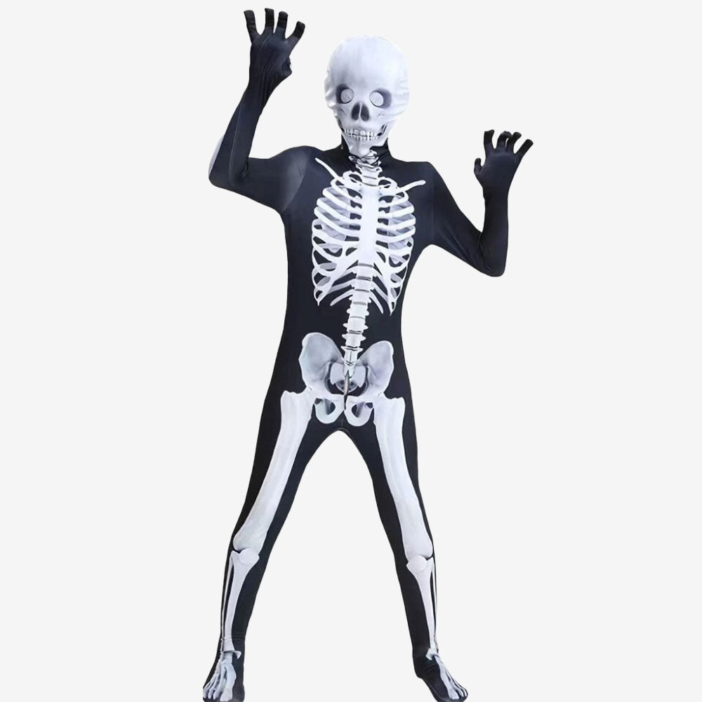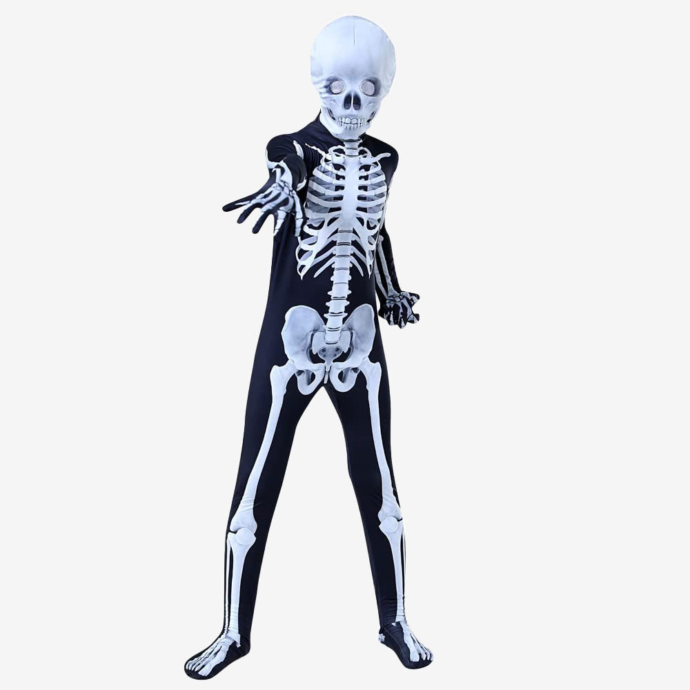 Ce déguisement de squelette intégral offre un effet terrifiant et réaliste pour Halloween. Sa combinaison noire imprimée d’os blancs, en tissu extensible et confortable, assure une liberté totale de mouvement. Parfait pour les soirées costumées ou spectacles, il mêle confort, réalisme et frisson pour un rendu inoubliable.